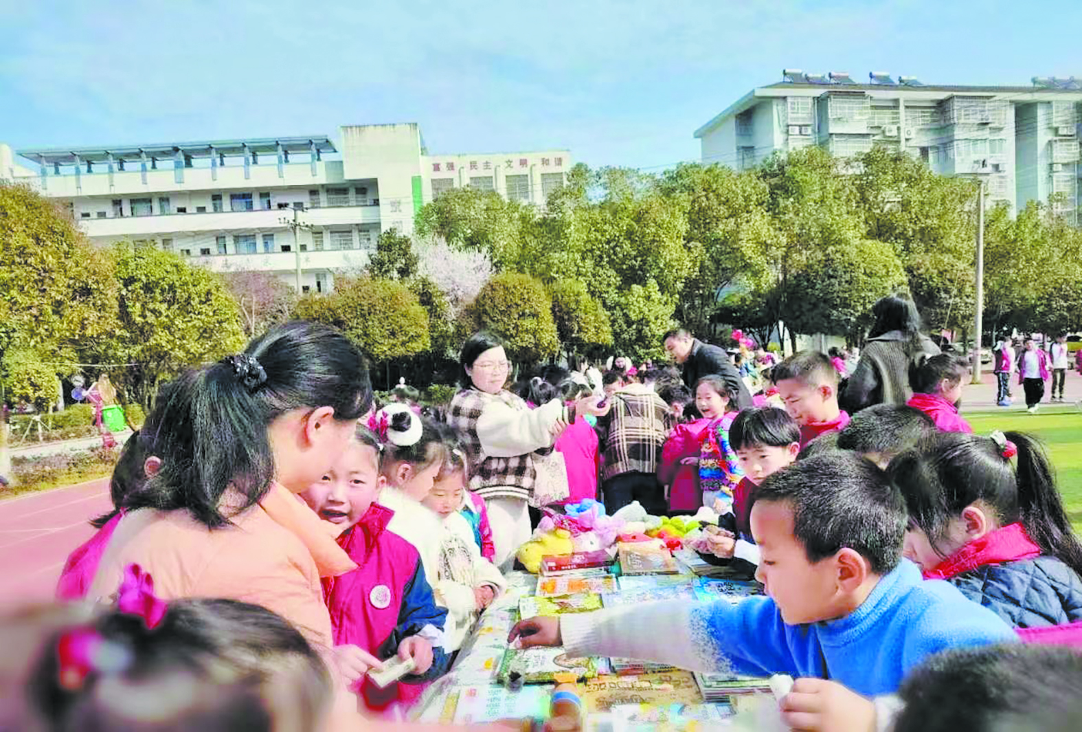 渌口区明德小学“书香”集市活动现场。通讯员/供图