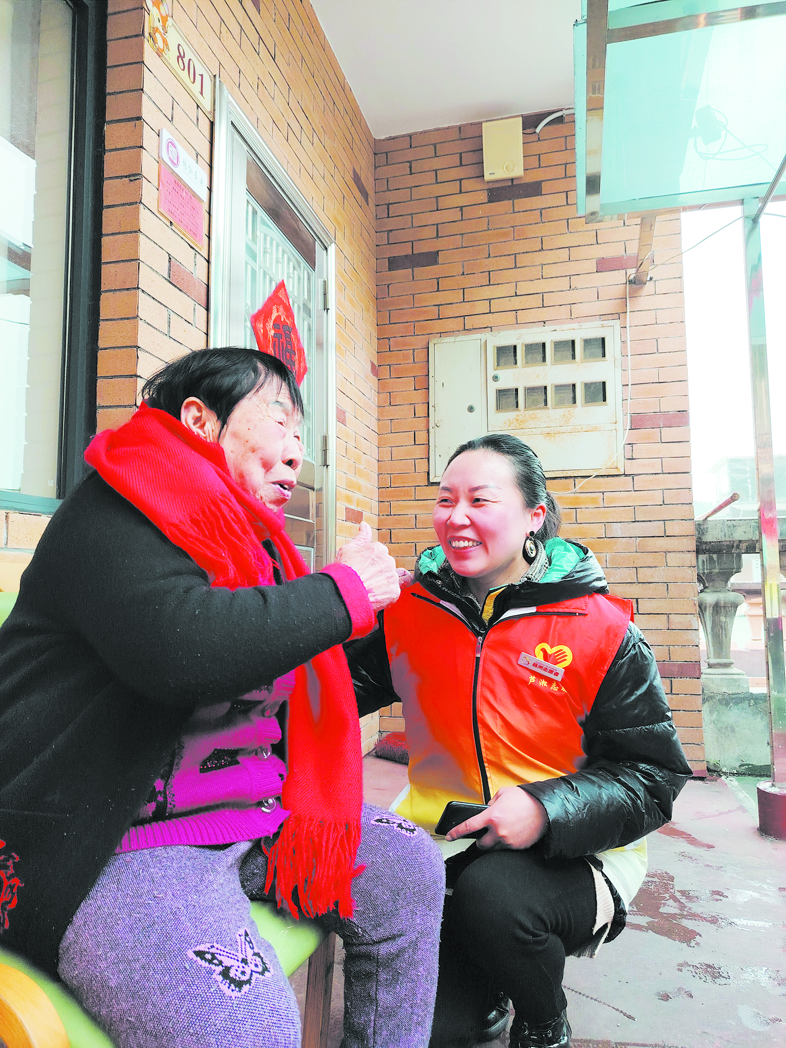 匡丰良陪老人拉家常。 受访者供图