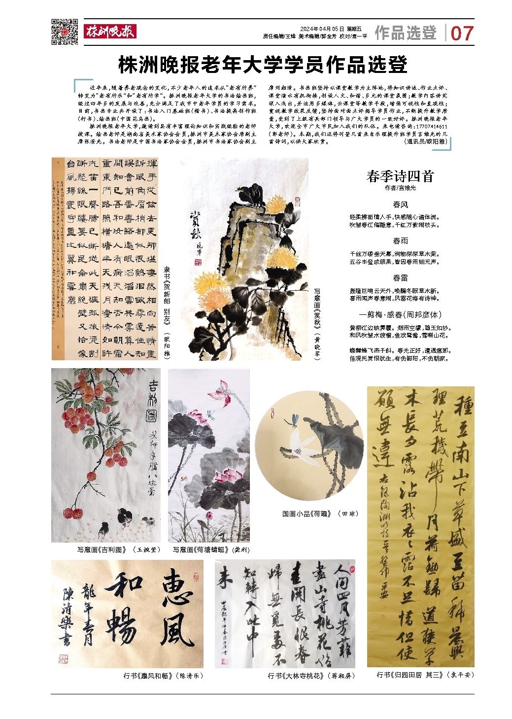株洲晚报老年大学学员作品选登