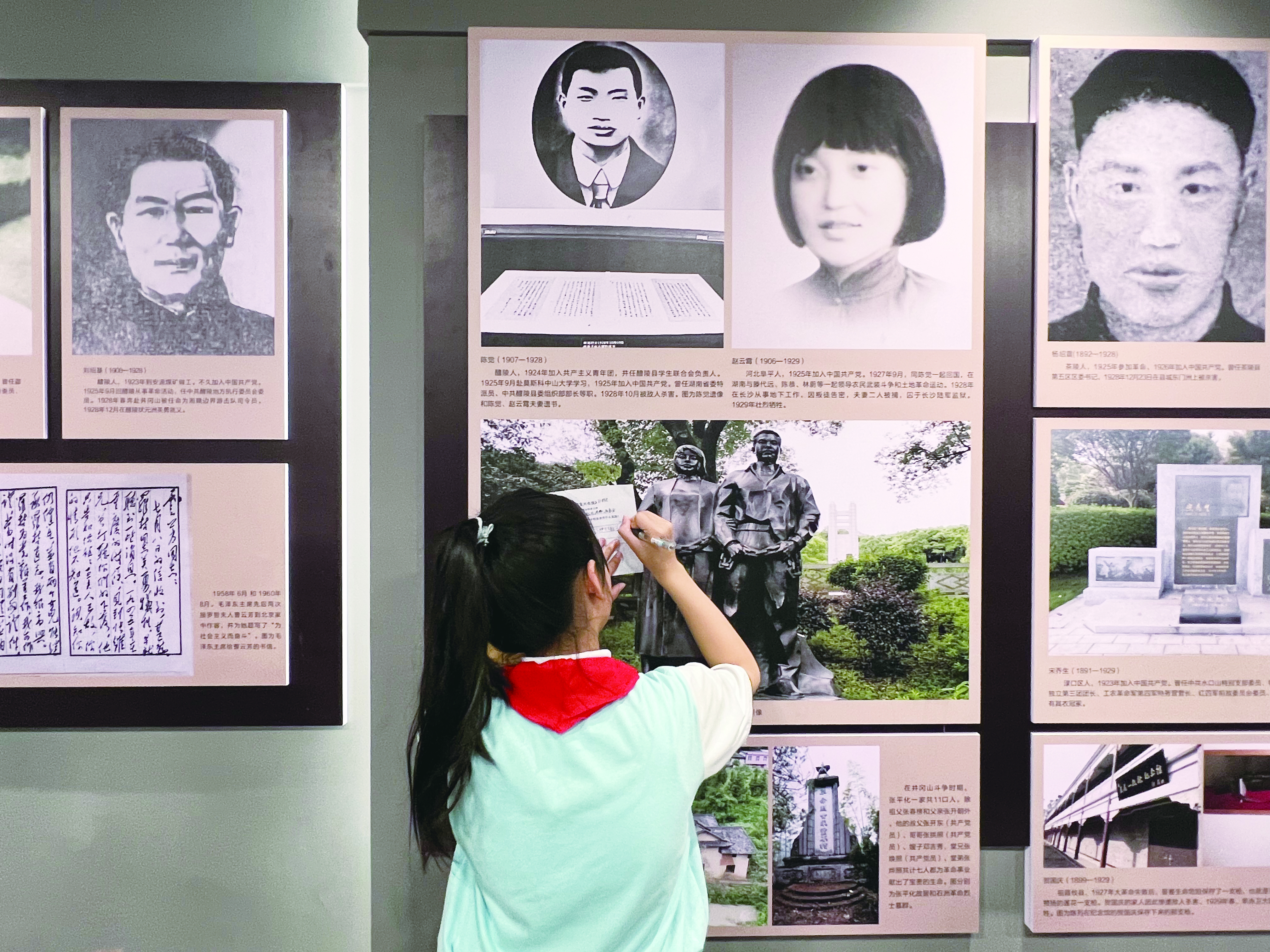 一名学生正在流芳纪念馆抄写英烈事迹。 记者/姚时美 摄