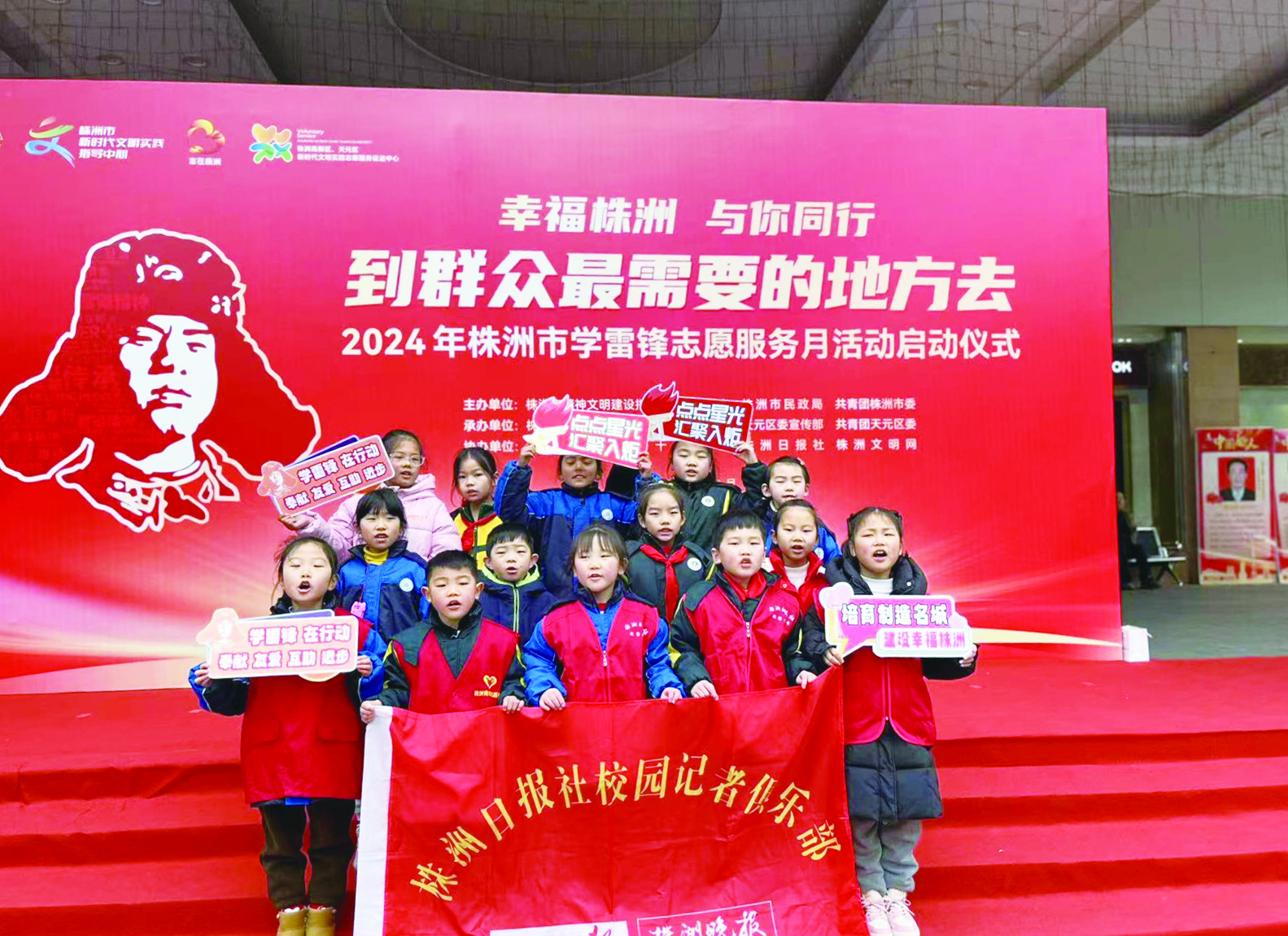 株洲日报社校园记者俱乐部组织各校校园记者围绕“学雷锋,树新风,做时代好少年”主题,开展形式多样的校园记者活动,如升旗仪式、大课间讲述雷锋故事、学习雷锋精神等。