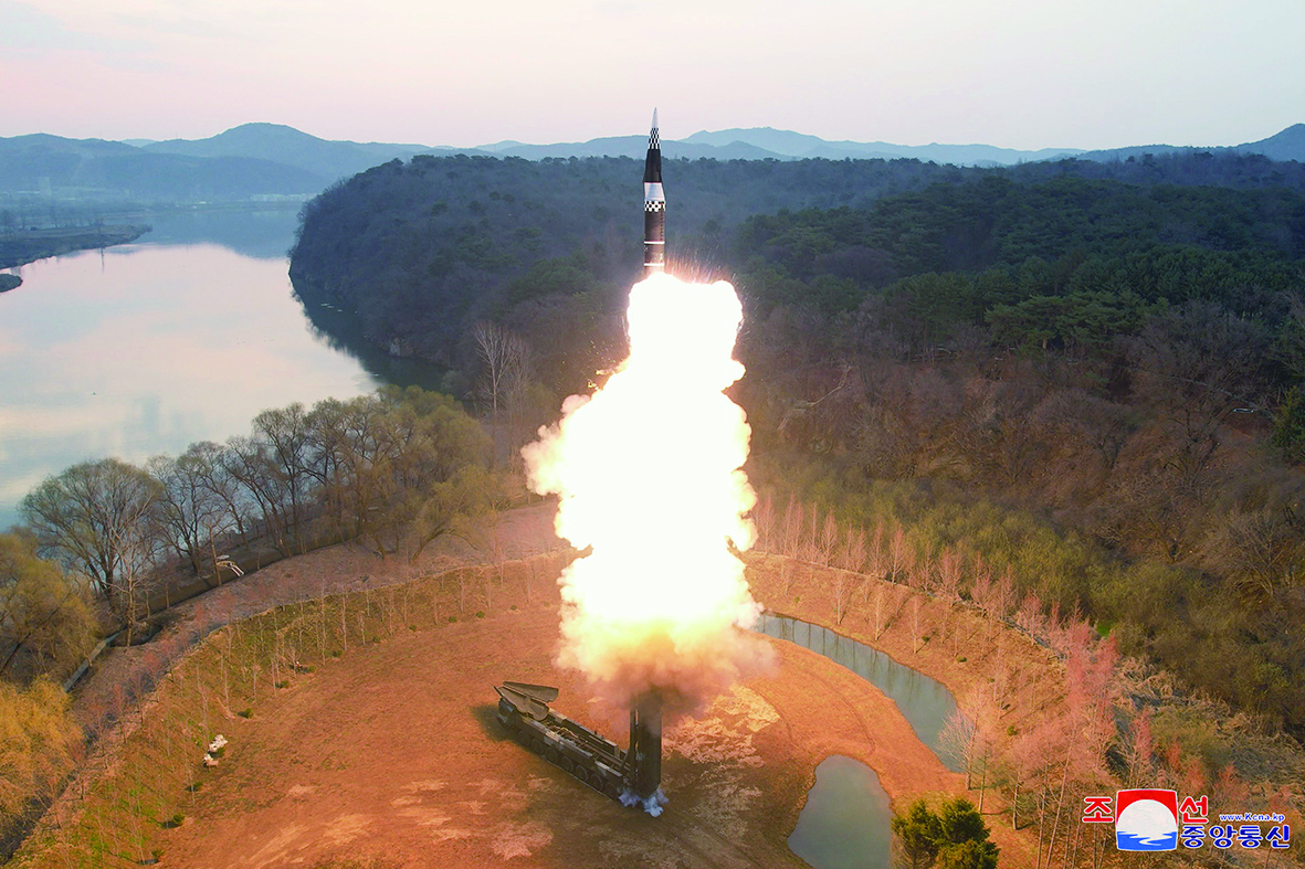 朝中社提供的导弹发射升空画面。
