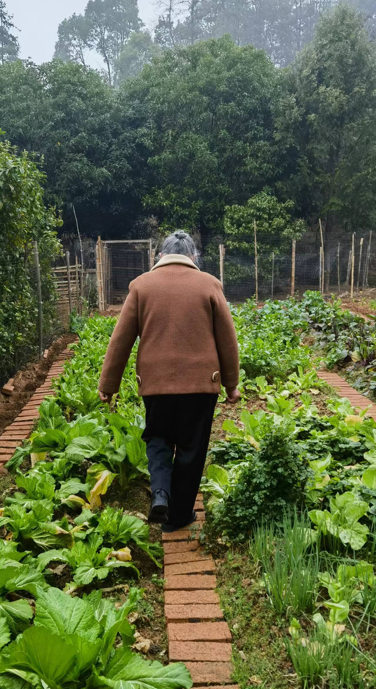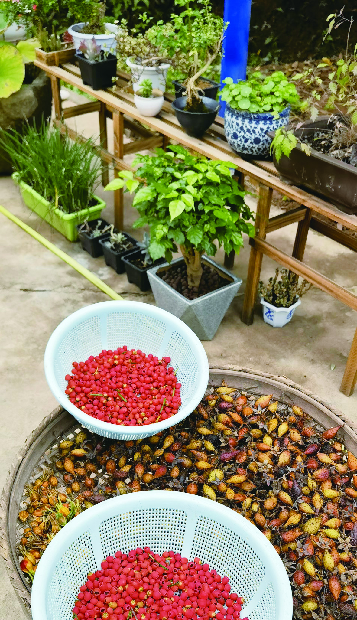 市民谭女士的母亲带记者参观菜地。 记者/唐剑华 摄 院内,主人不仅养花种草,还采摘晾晒了不少“山货”。记者/唐剑华 摄