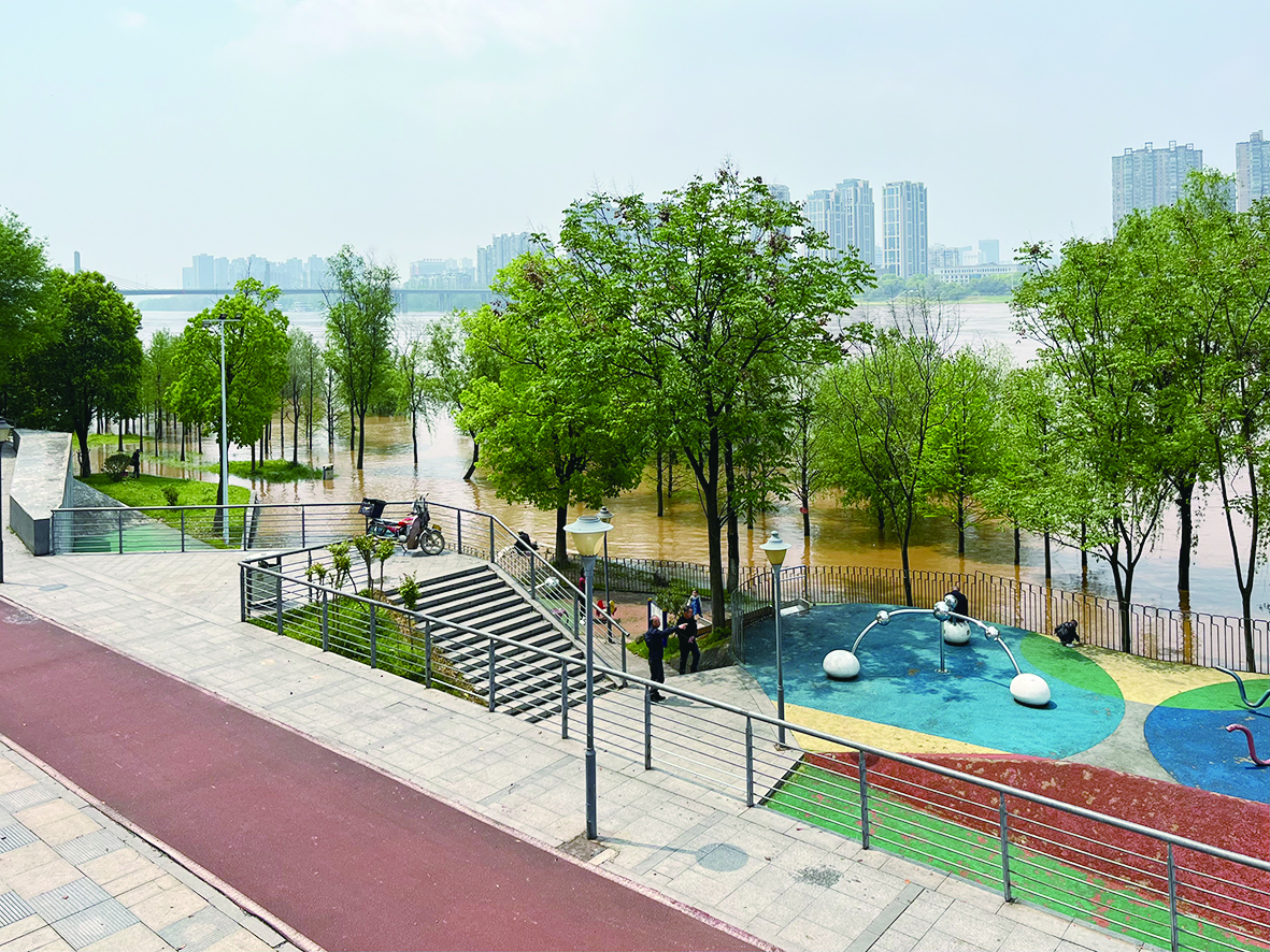 4月8日,受上游影响,株洲湘江段水位持续上涨。湘江风光带多处被洪水淹没,部分通往风光带游道的出入口设置了警戒线。市园林养护一所工作人员提醒,涨水期间,在江边散步和垂钓的市民请注意安全,以免发生不测。图为河东湘江风光带被洪水淹没。