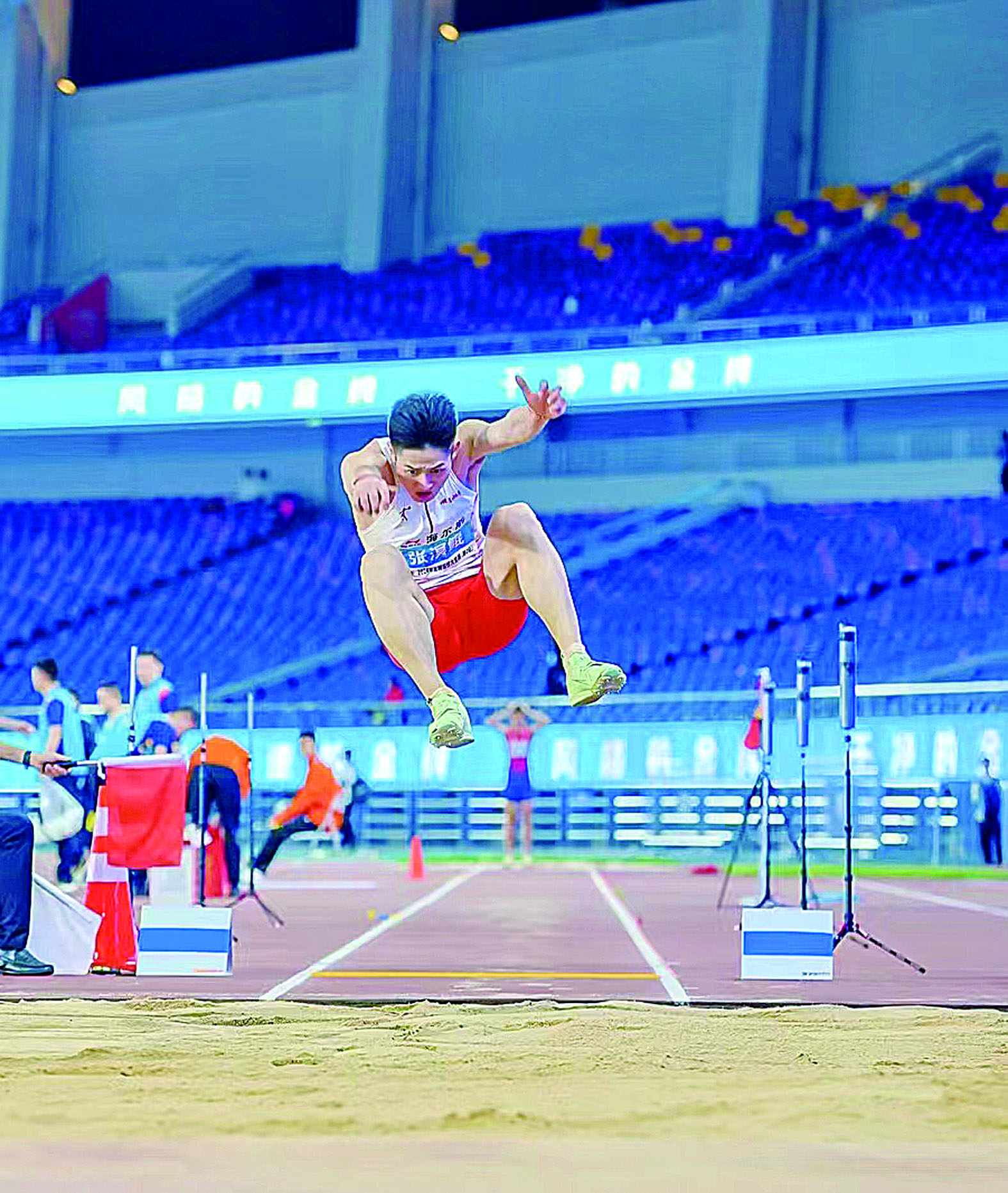 株洲伢子张溟鲲作为中国跳远界的一名新星,再次刷新成绩,达到8.08米,力压群雄成功夺冠(如图)。此外,来自醴陵的何珂,与队友雷畅、张嘉琳和肖燕,以3分40秒的成绩获得女子4×400米接力冠军。
