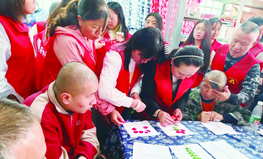 当天,参加活动的残疾人被爱心专车送至校园,随后,在志愿者引导下,他们参观校园,学习“蜡染”、植物拓染等传统工艺。大家分工合作,将一块块洁白布料,通过画、染等,变成了一幅幅漂亮的工艺品。