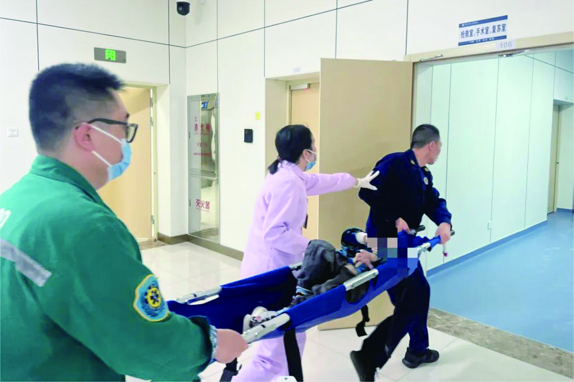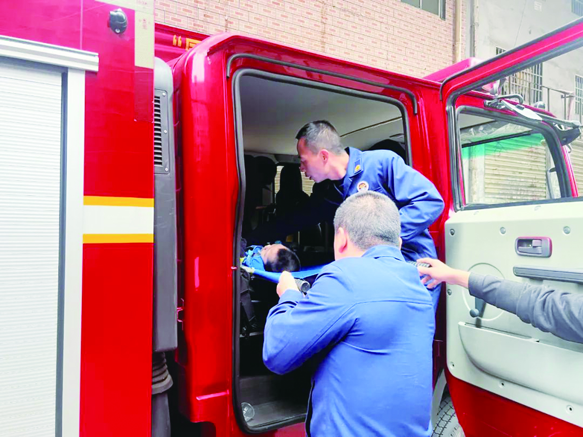 时间就是生命。由于接近下班晚高峰,在征得奶奶同意后,欧阳伟平与同事从消防车上拿来担架,小心翼翼将阳阳抬上消防车。此时,消防车变身“救护车”,拉响警笛、直奔医院。