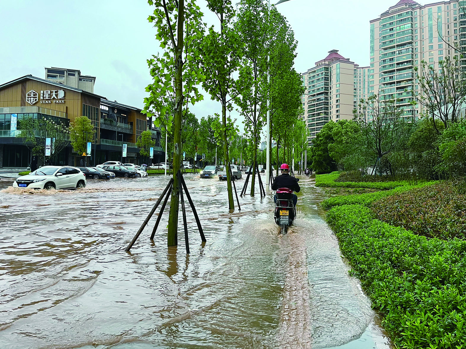 4月16日,株洲遭遇强降雨袭击,城区多条道路出现内涝。部分路段积水严重,车辆通行困难。内涝路段,有电动车、汽车因强行涉水通行,被困水中。有热心车主提醒,涉水路面行车需谨慎,广大车主切勿强行通过。株洲晚报融媒体记者/刘平 摄