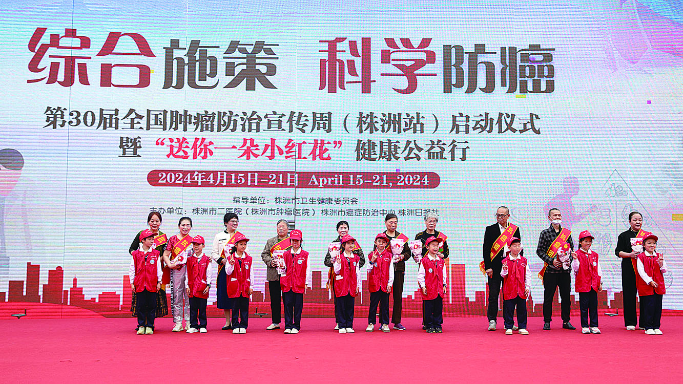 本报讯(株洲晚报融媒体记者/谭筱) 提起肿瘤,人们总会心生畏惧。4月14日,第30届全国肿瘤防治宣传周(株洲站)启动仪式暨“送你一朵小红花”健康公益行活动在神农湖水秀广场举行,两百余组校园记者家庭来到现场,了解健康生活知识,传播健康理念。