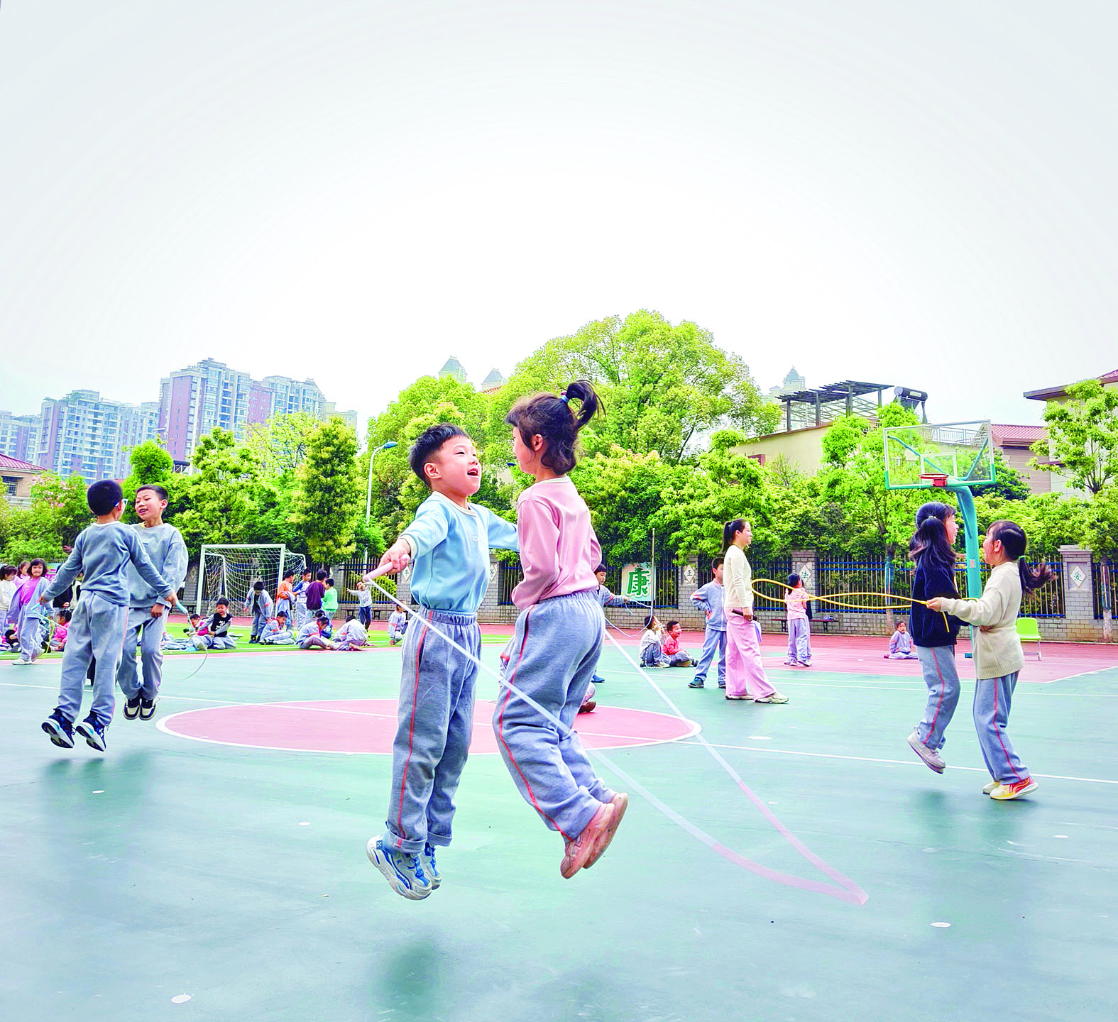 近日,在天台小学的操场上,一场引人注目的“跳绳节”活动精彩上演。学生们通过竞速跳、交叉跳、双摇跳等个人项目展现了惊人的速度与技巧,同时在往返跑跳绳接力和跳长绳等集体项目中,展现出团结协作的精神和灵动身姿。