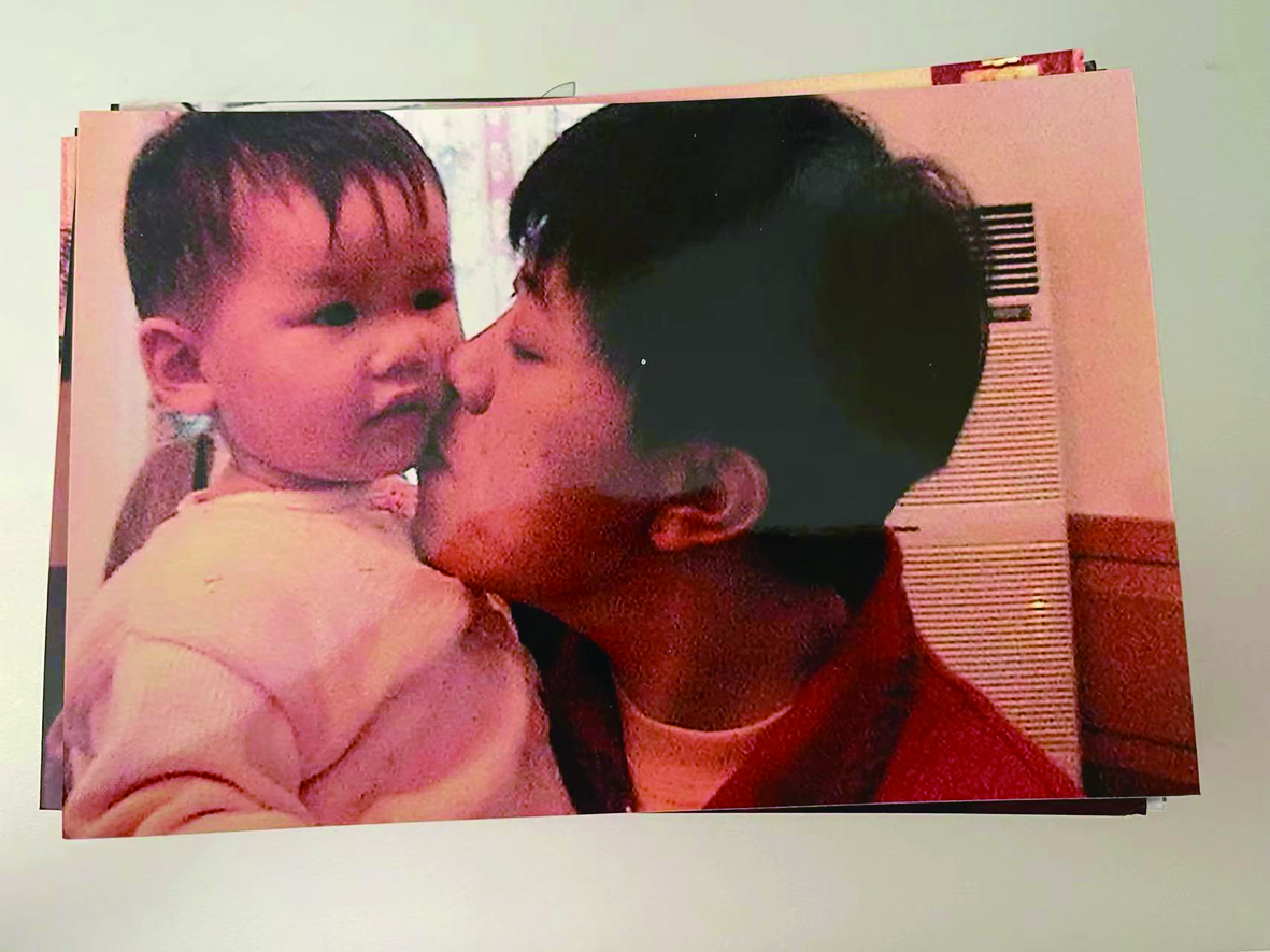 “这是在那栋房子里拍的。”她指着自己与保育阿姨的合影说。