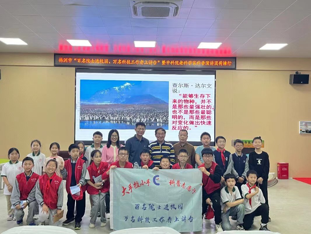 市实验小学校园记者与中科院老科学家高登义合影。校方供图