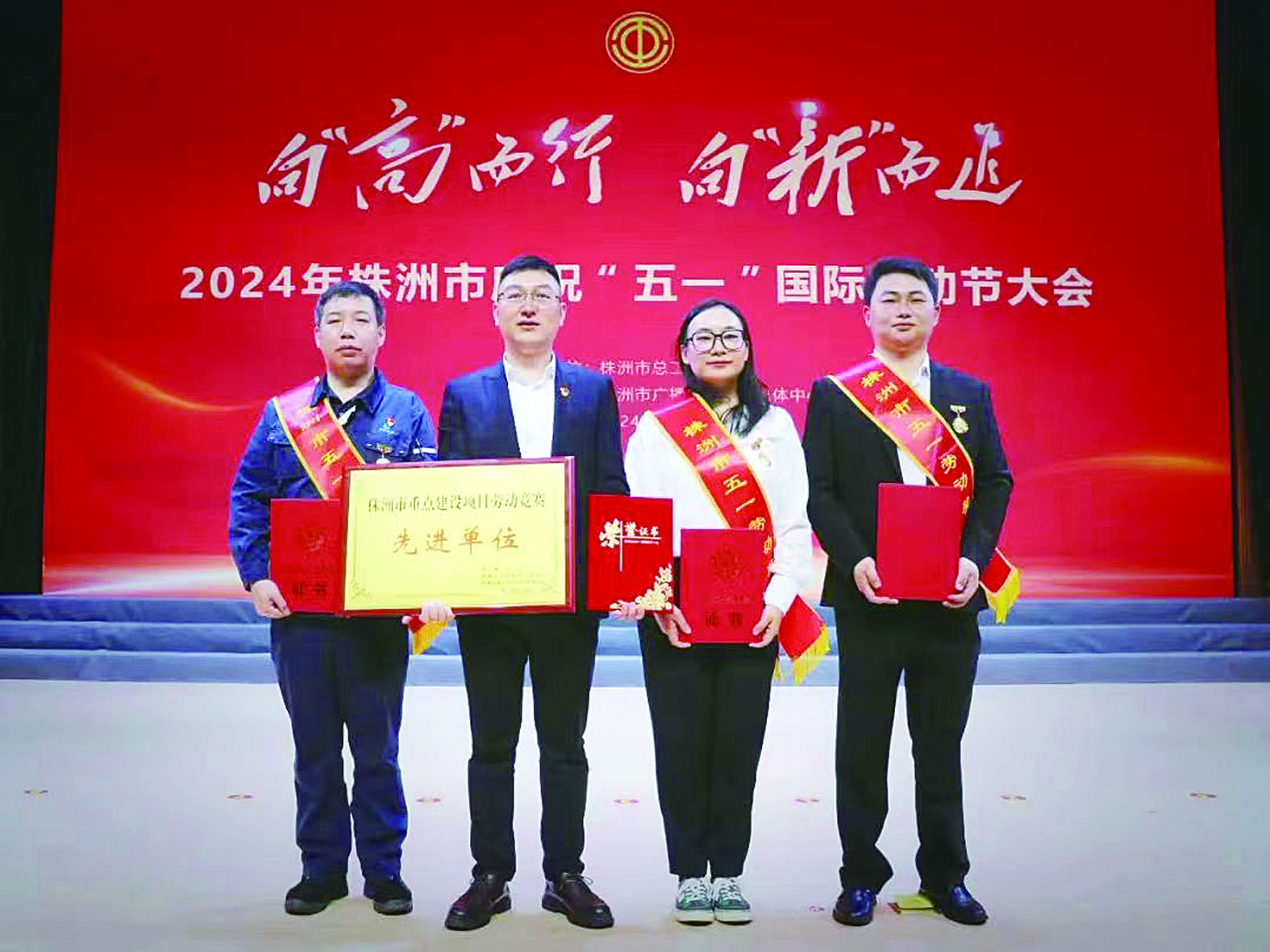 获奖集体及个人(右一为张华)。株洲市国投集团供图