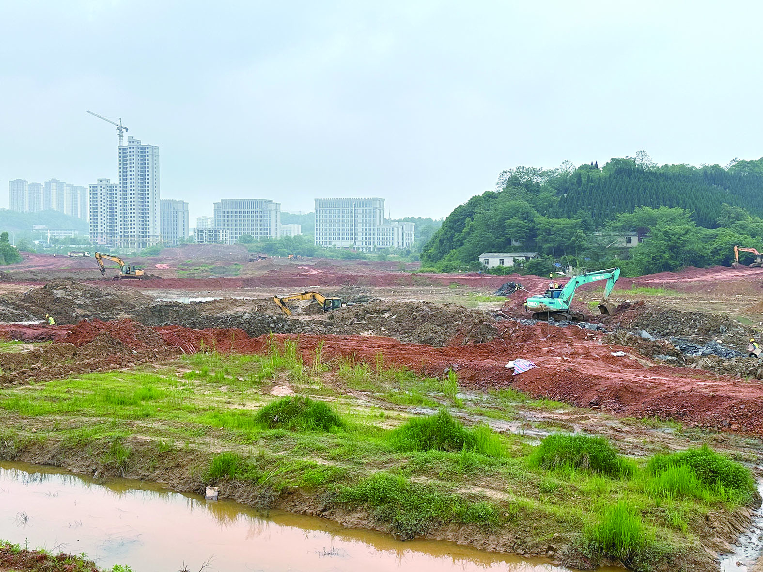 施工现场,挖掘机、推土机、工程车各种大型设备齐上阵。在公园南部,原本杂草丛生的荒地里,挖出了一个3米见深的圆坑,根据设计,这里将用于公园水系的汇集点。通过前期的改造公园由平地有了明显的地势起伏。