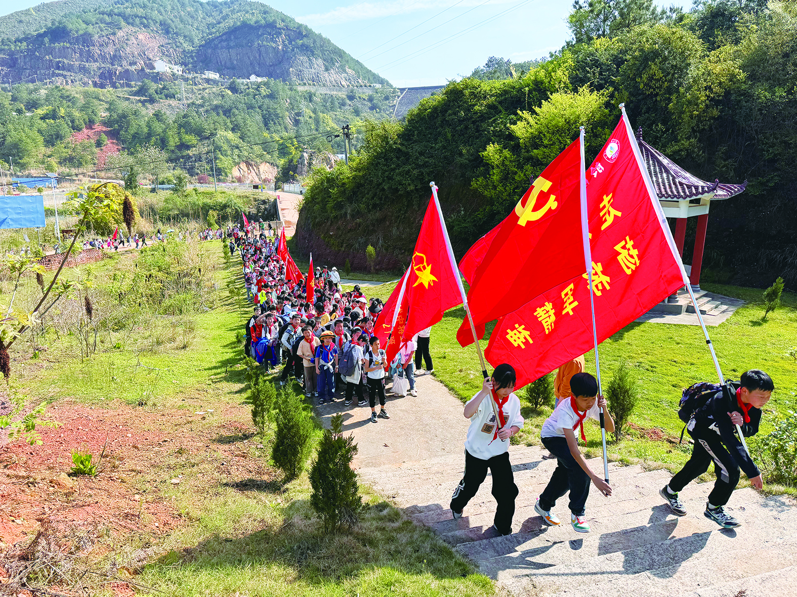 近日,教育部、中央军委政治工作部联合印发《关于认定公布2023年中小学国防教育示范学校的通知》,公布了全国2431所学校为中小学国防教育示范学校,我市5所学校榜上有名。上榜的学校为南方中学、八达中学、二中附属小学、醴陵市姜湾小学、茶陵县舲舫中心小学。这是自2023年首次公布全国示范校以来,我市中小学国防教育示范学校矩阵再次扩容。图为2024年茶陵县舲舫中心小学重走将军之路徒步祭扫活动。
