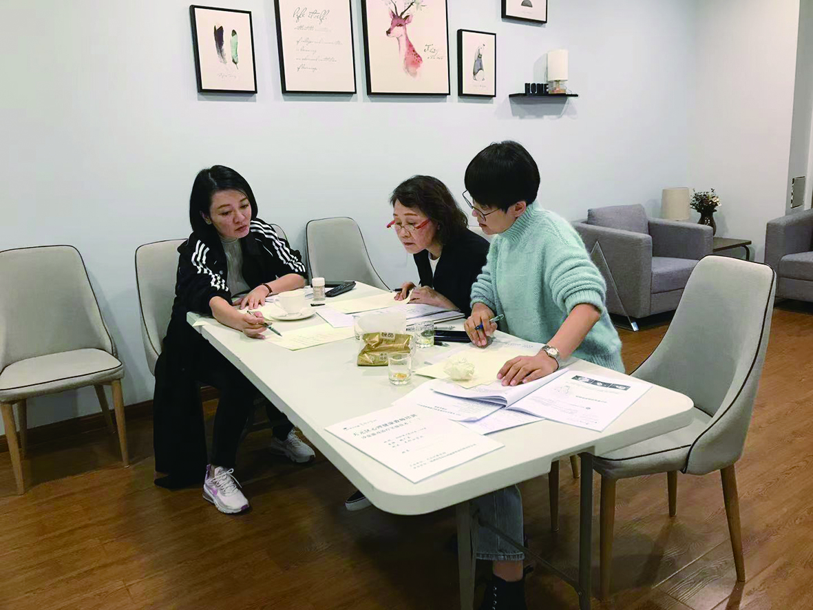 王华和带教的心理咨询师学员在一起。 受访者提供