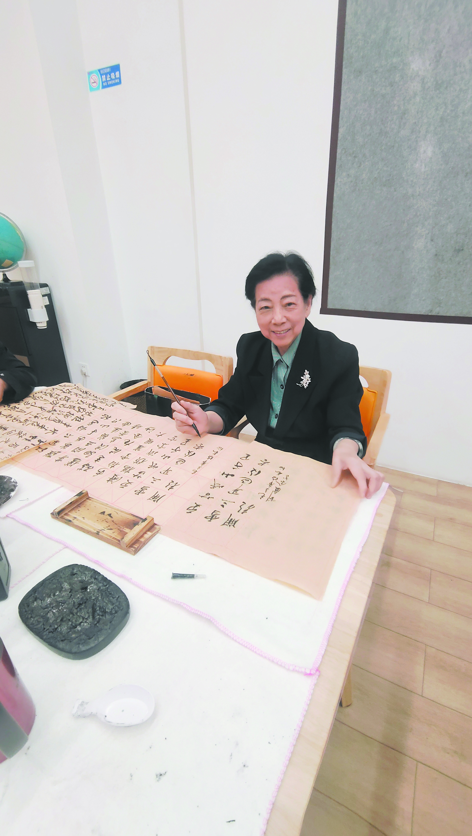 ▼老人正在练习书法。