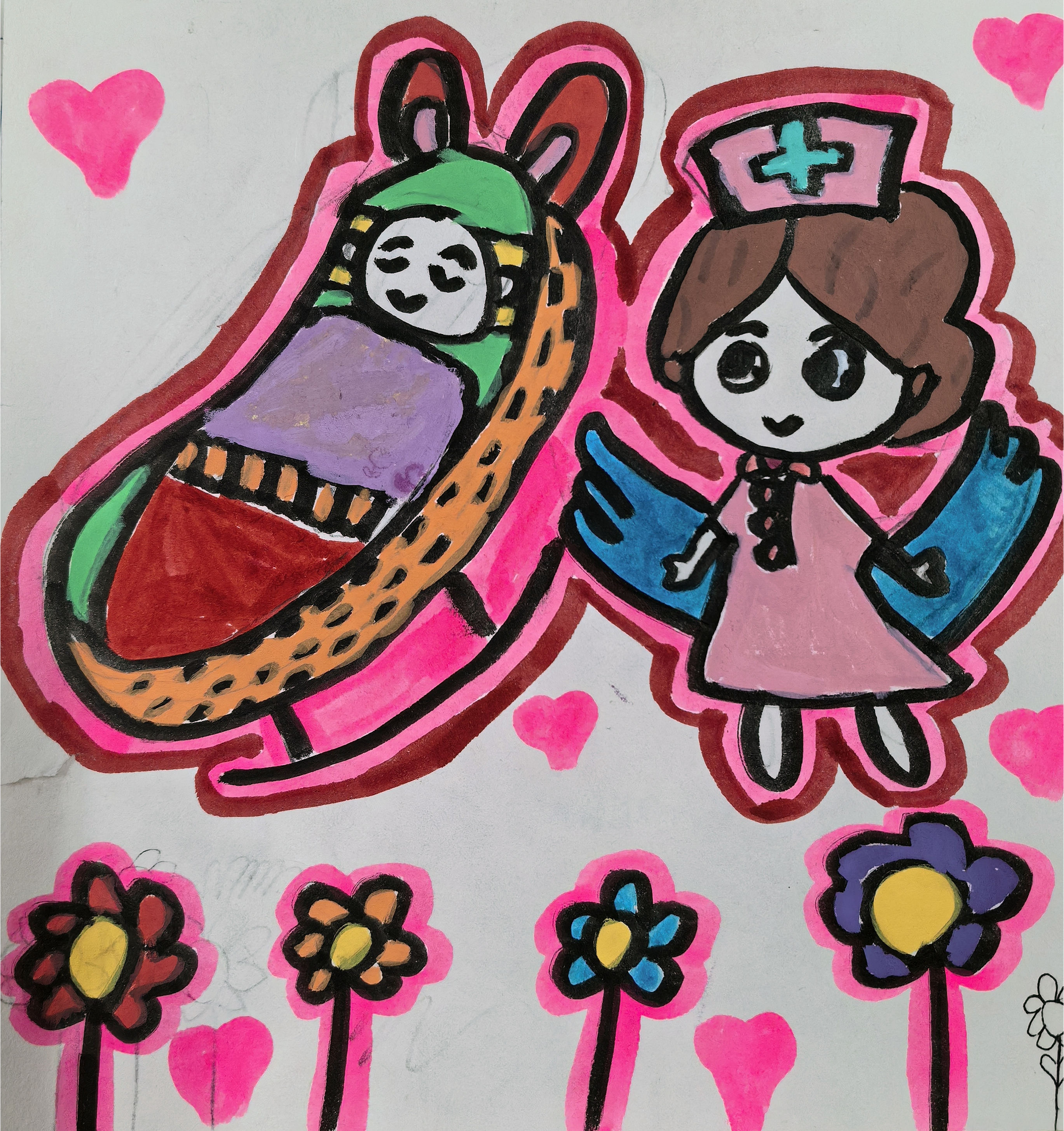 您是护士,也是“妈妈”。您有妈妈一样温暖的双手,把我“接”到这个世界上。用“爱”抚摸我、安抚我、照顾我、呵护我。我爱您!我亲爱的“护士妈妈”,您辛苦了!(温妍溪 证号:24040110637)