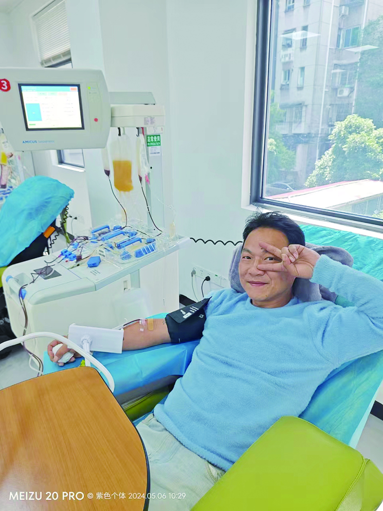 “那时候年轻,看到公司很多人报名,我也跟着去了。”第一次献血,黄毅芳什么也不懂,也很紧张害怕。经过工作人员的细心解释,他平静了下来,“扎针也不痛,献血后没有什么感觉,就和平常一样。”黄毅芳说,当时自己的想法并没有那么伟大,只是了解到无偿献血免费用血政策,他便想着为自己和家人储备一份“保险”。直到2015年底,他偶然在一次和医务人员的交流中了解到,机采血小板对患者来说,更能减少输血反应,提升治疗效果,节约宝贵血液资源,他便开始捐献机采血小板。26年来,他累计献血38000毫升。2023年6月,他荣获全国无偿献血奉献奖终身荣誉奖。