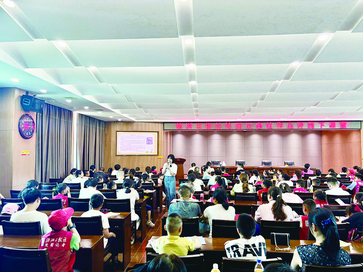 课堂上,张峰对于校园记者的佳作内容进行认真细致的逐一点评,分享了“要引导学生写真话、抒真情”“家长要帮助孩子从小养成良好的阅读习惯”等理念;从学生佳作点评到如何写作文的技巧……短短一个多小时的课程,内容层层递进,节奏紧凑分明。
