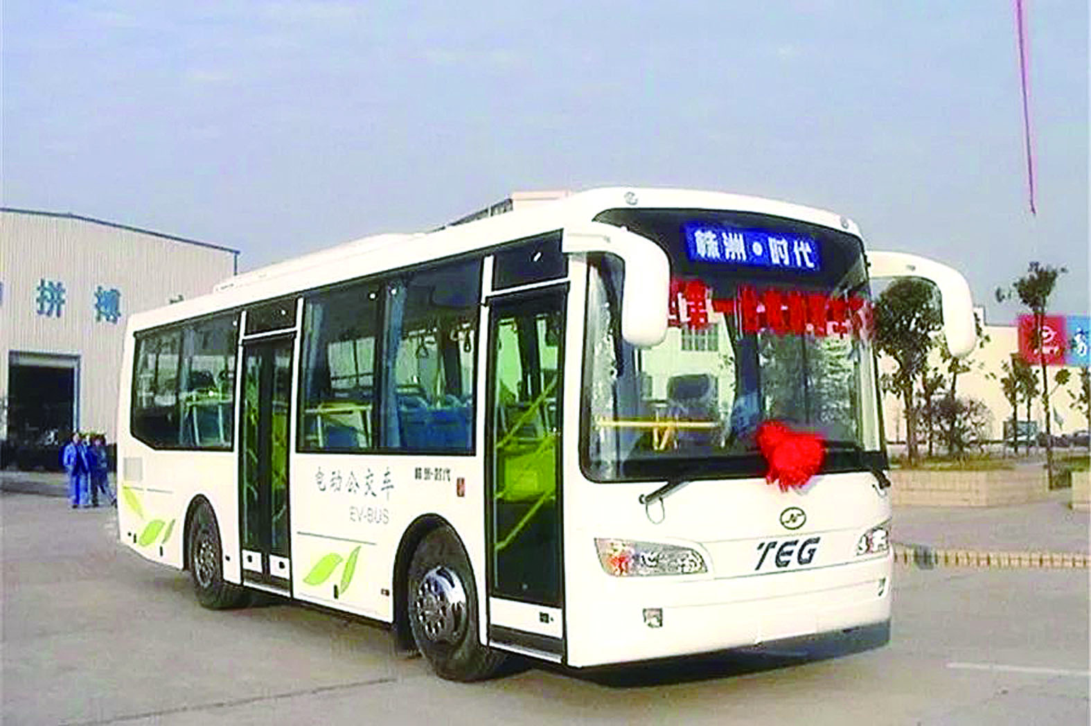 首台纯电动客车,实车长9米、设20个座位,于当天中午从江西运回株洲后,车子稍做准备即重新发车,向公司大门驶去。