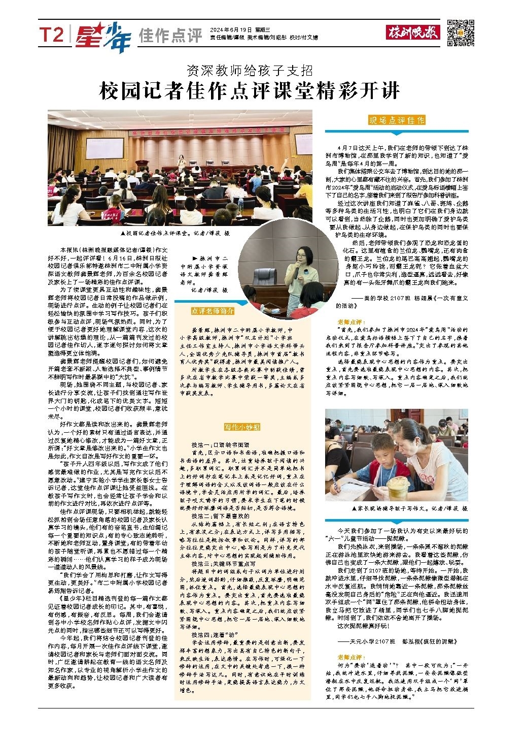 校园记者佳作点评课堂精彩开讲