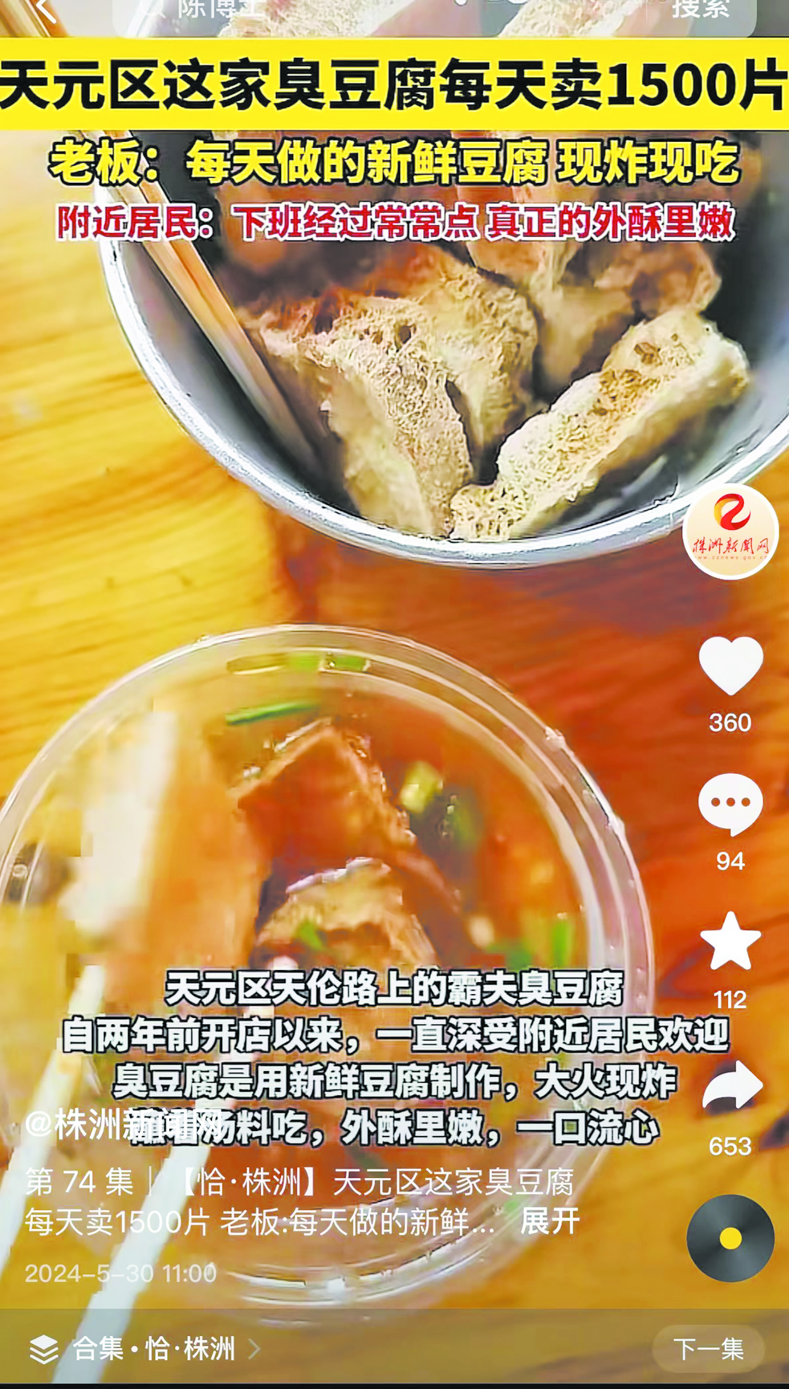 天元区这家臭豆腐每天卖1500片,每天新鲜豆腐,现炸现吃。附近居民:下班路过尝尝点,真正的外酥里嫩。