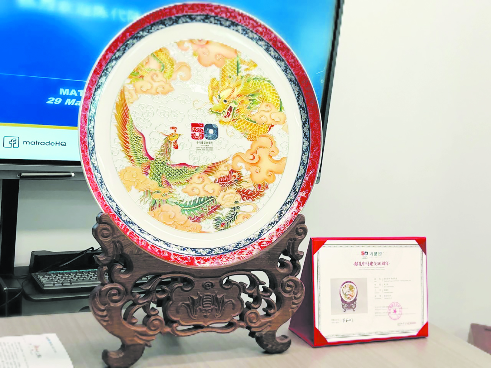 本报讯(株洲晚报融媒体记者/刘毅 通讯员/肖曦)今年5月31日,是中国与马来西亚建交50周年纪念日。日前,醴陵市代表团受邀赴广州,向马来西亚驻广州总领事馆商务处赠送三套龙凤呈祥主题醴陵釉下五彩瓷器。