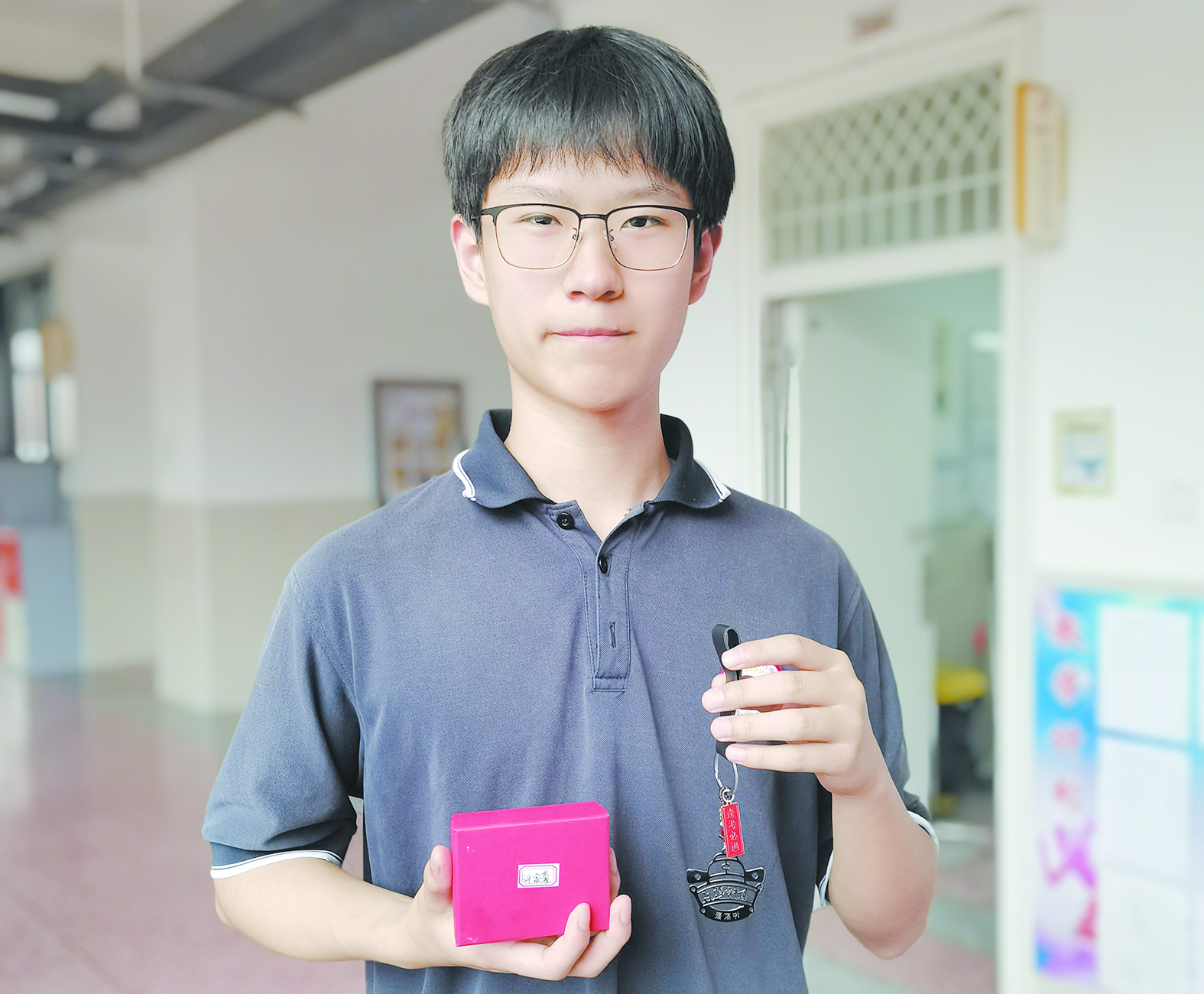 南方中学考生收到了刻有自己名字的钥匙扣。 记者/戴凛 摄