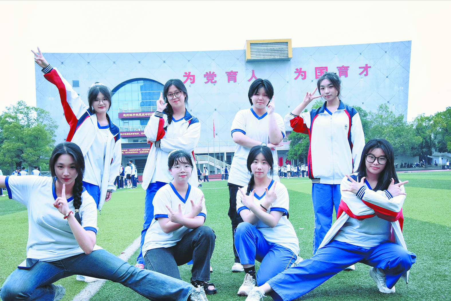 株洲市八中:学子们在操场上比出象征胜利的手势。 通讯员/周婷 供图