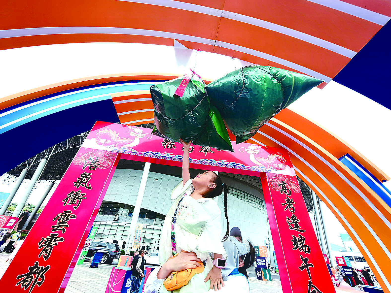 “小朋友,可以用便签写下祈福心愿,然后来包一束艾草花束吧,送给你带回家。”9日下午,穿着汉服的工作人员在“厂BA”硬核株洲板块,免费带市民包扎花束,她的身边,戴粽子头饰的同事正为旱地龙舟拔河赛做准备,以家庭为单位的选手们摩拳擦掌,相互鼓劲;五步开外,神农集市的烟火气十足,食客熙攘,状元糕、鱼跃龙门(烤鱼)、展翅高飞(炸鸡翅)等喻意逢考必过的食品大受欢迎。