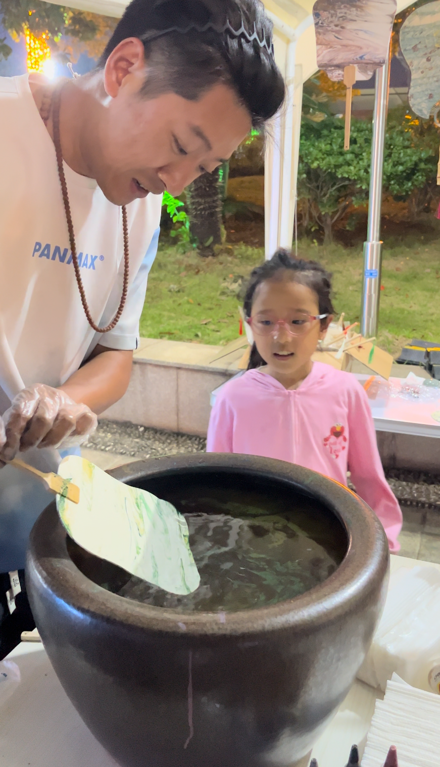 传统漆扇制作吸引市民驻足体验。记者/谭昕吾 摄