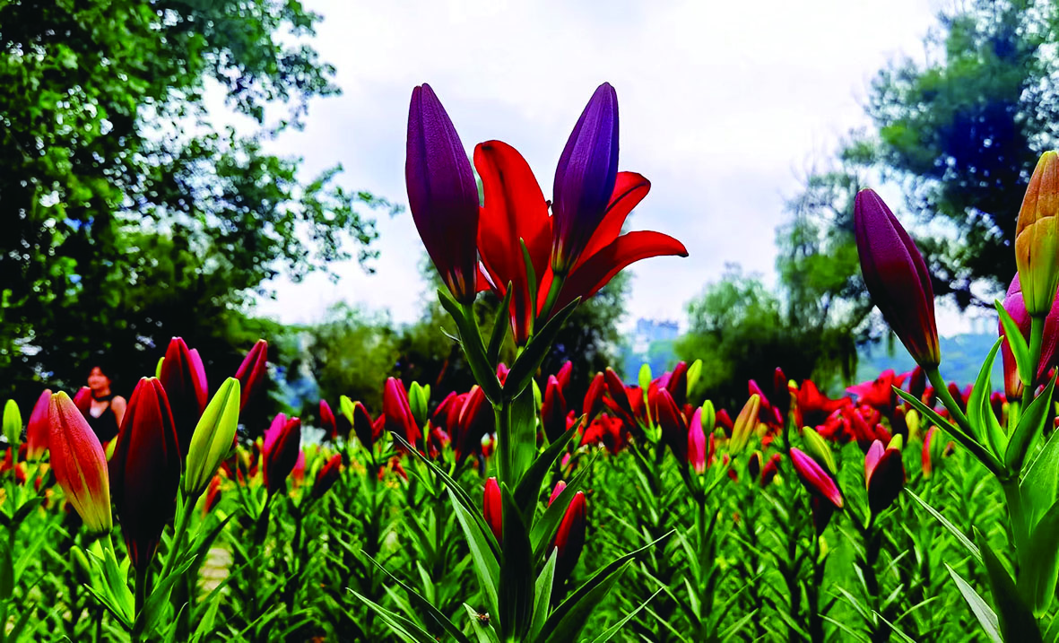 端午时节,天元区滨江南路钢琴广场百合花含苞待放,有的已绽放美丽,期盼游客观赏。