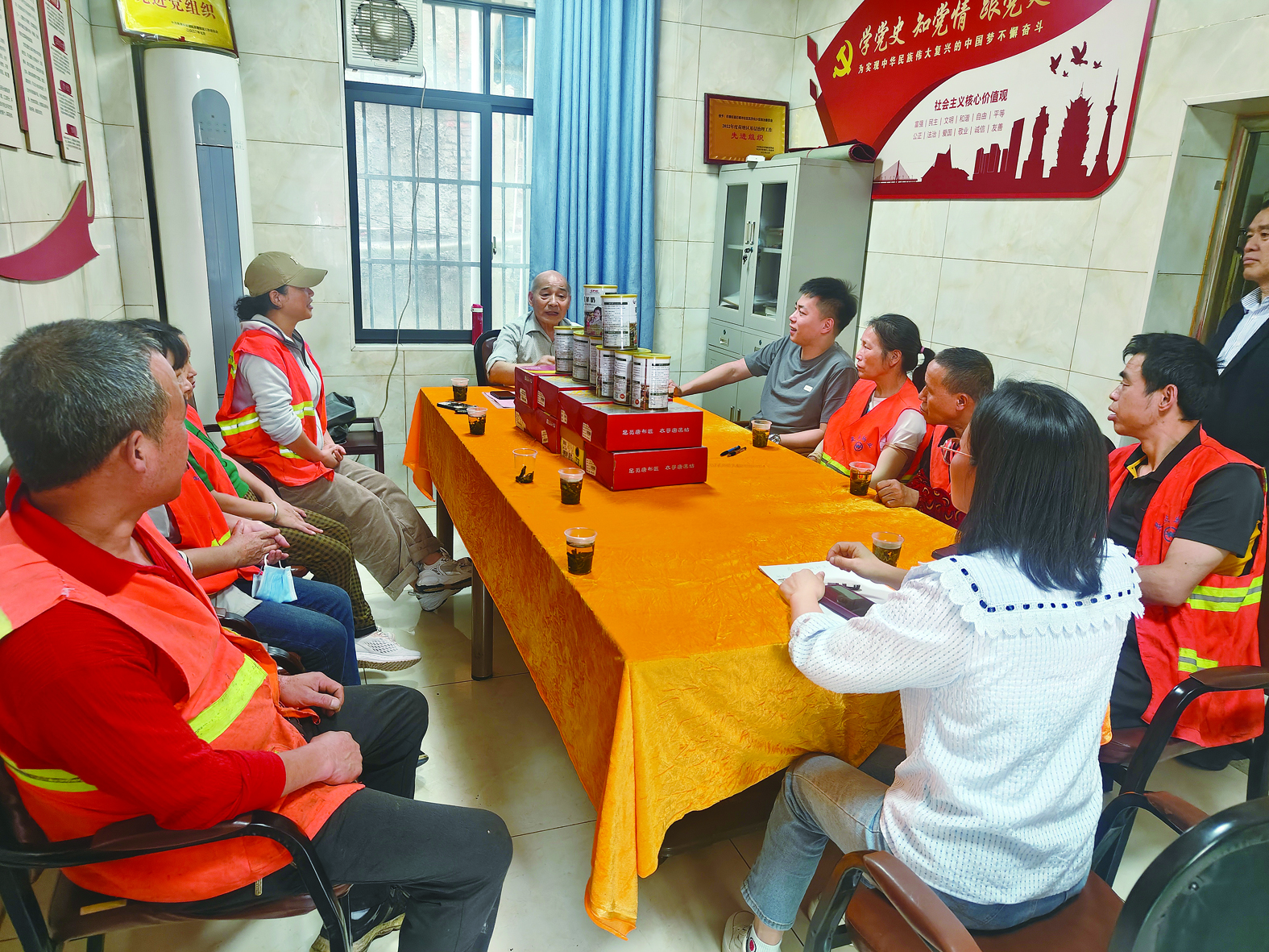 荷塘区五交化党支部对接社会爱心企业,慰问社区环卫工人。受访者供图