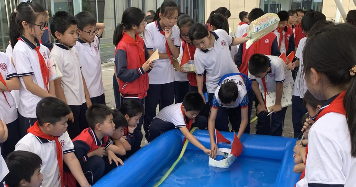 比赛面向全校学生,每组设立不同的制作难度和测量标准,一年级折飞机、二年级纸的承重挑战赛和三年级A4纸直立高度挑战赛、四五年级电动纸船。选手们积极动手动脑,用无限的想象力折出了花样百出的纸船:修长的、宽阔的、立体的、扁平的……他们在前期的设计中认真研究对比,从而设计出了最能承重的纸船。