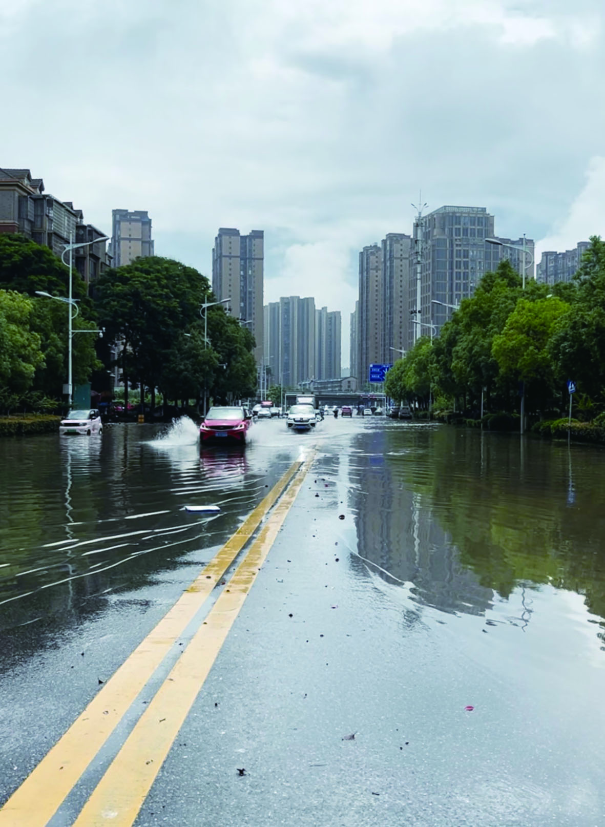 昨日上午,受暴雨影响,天元区新东路湘湾小区路段出现内涝。路边居民反映该路段已多次出现内涝现象,存在排水不畅的问题,希望管理部门对该路段排水设施进行检查。