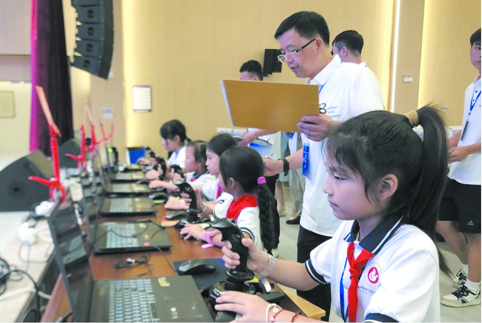 近年来,市二中附属第三(南洲)小学积极推行学科融合发展,将“科技强国”思想作为践行“五育并举”教学理念的重要抓手之一,学校积极开展青少年科学教育,打造科学教育示范校。接下来,该校将继续加强模拟飞行教育,培养学生的科学素养和实践能力,培养热爱航空、心系国防的航空后备人才。