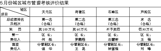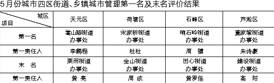 5月份城市管理考核评价结果揭晓