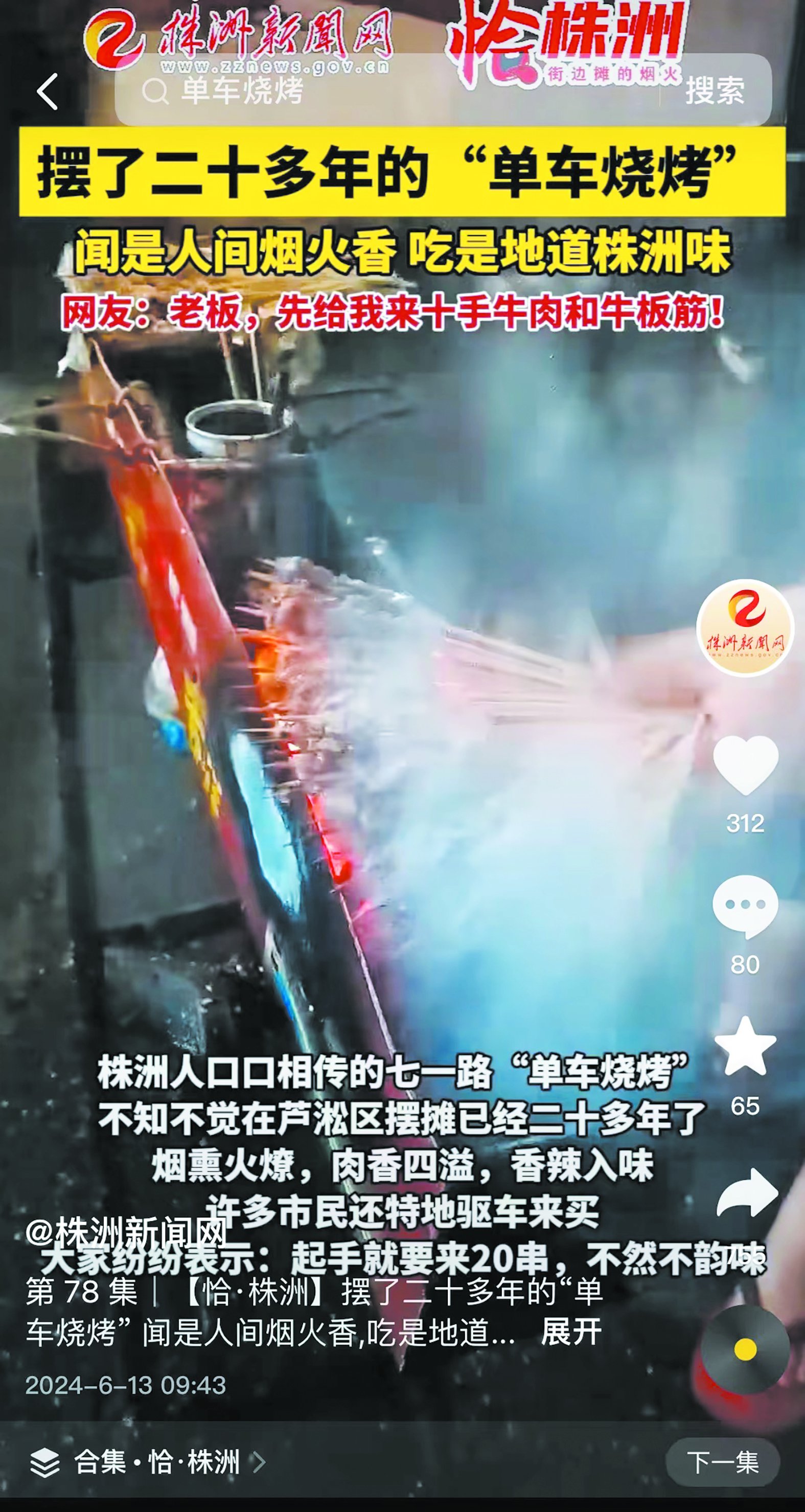 株洲人口口相传的七一路“单车烧烤”,不知不觉在芦淞区摆摊已经二十多年。闻是人间烟火香,吃是地道株洲味,许多市民特地驱车前来:老板,先给我来十手牛肉和牛筋!
