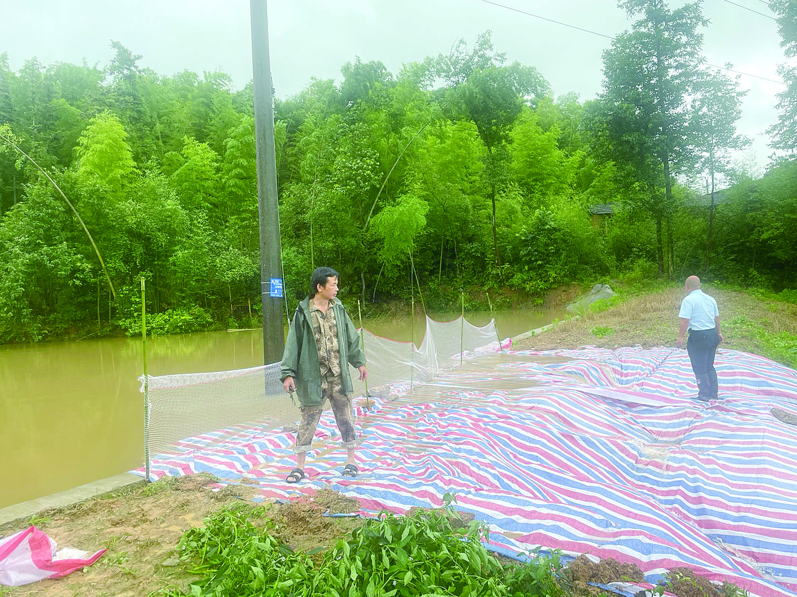 • 铺上防水布,防止因水渗透堤坝出现垮堤险情。6月19日,记者来到芦淞区白关镇桐山村周家湾组看到,一座山塘出现了漫堤险情。村里立即组织人员进行抢险,区水利局专家到现场指导抗洪。