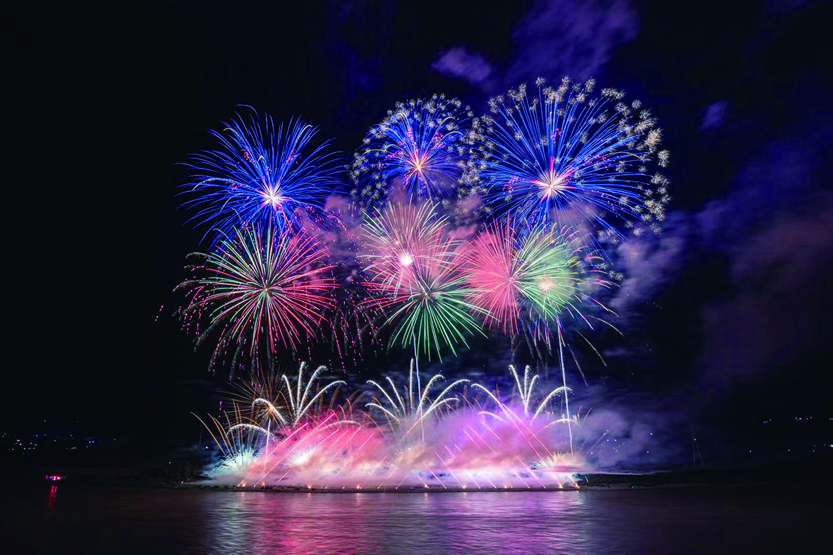 6月22日晚,四川乐山市,醴陵花炮焰火展演,点亮夜空。 记者/刘毅 通讯员/黄永强 摄