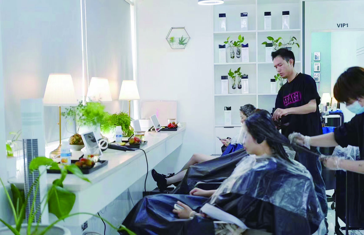 高考结束后,理发店生意火爆。 记者/杨凌凌 摄