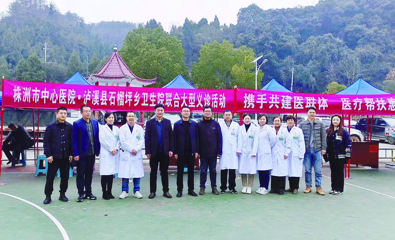 在宋玺(右一)牵线搭桥下,今年1月,市中心医院派出医疗专家团队赴泸溪开展义诊并共建医联体。(受访者供图)