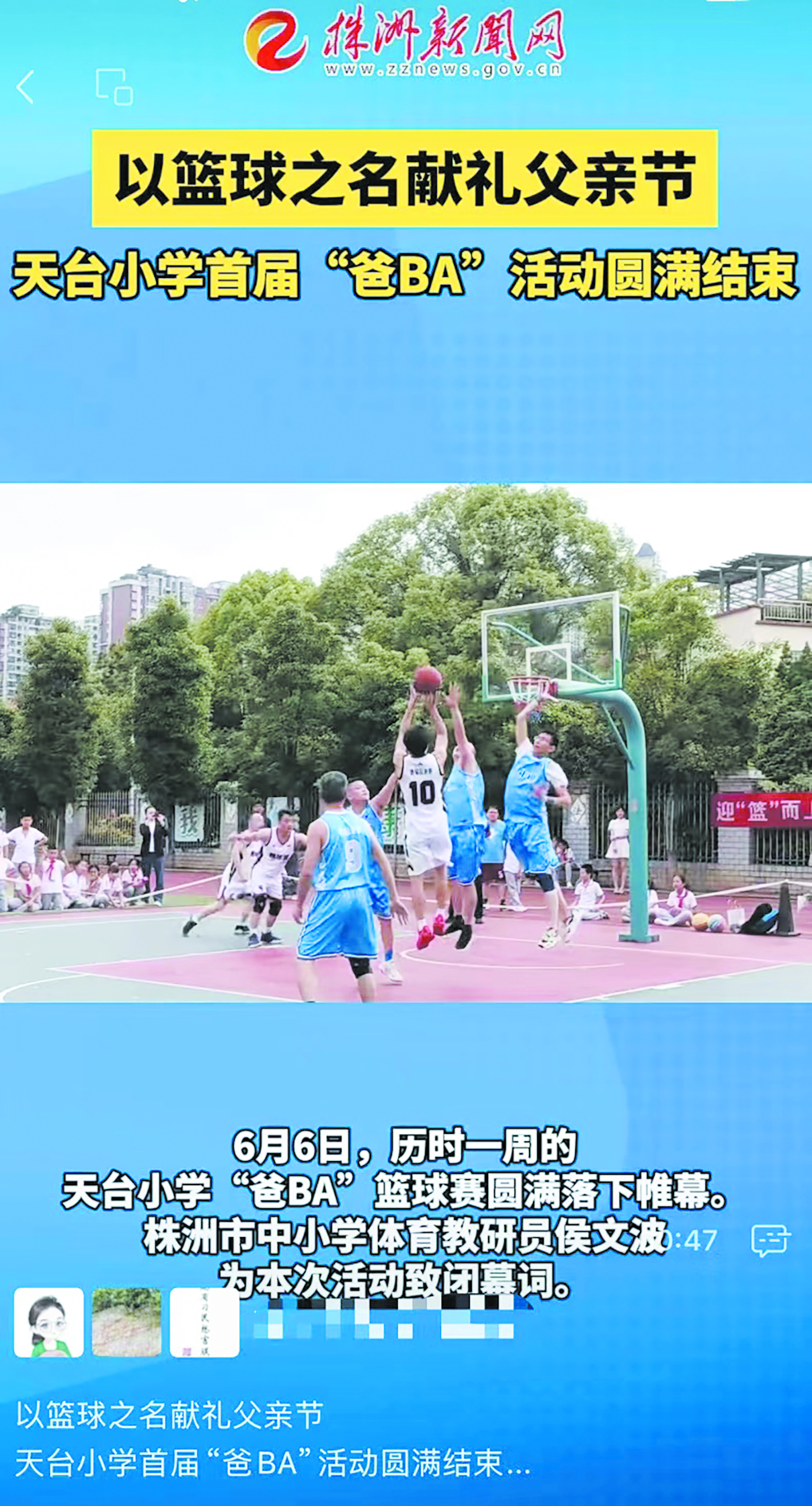 以篮球之名献礼父亲节,天台小学首届“爸BA”篮球赛圆满结束。