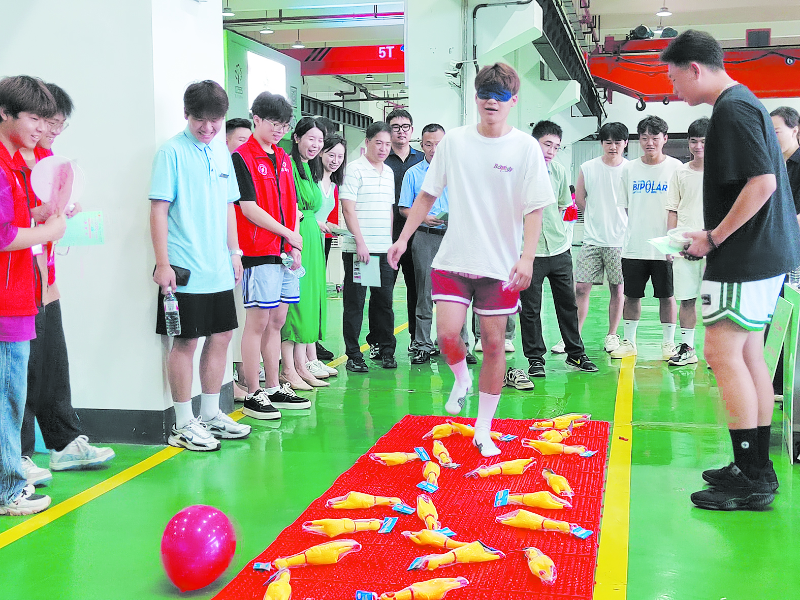 “请按照小伙伴的提示行走到终点。”在湖南化工职业技术学院展台前,“尖叫过河”的活动吸引了不少师生围观。记者看到,长方形的指压板上,摆满了许多玩具道具,参与者根据现场朋友指挥,避开“雷区”,即视为通关。