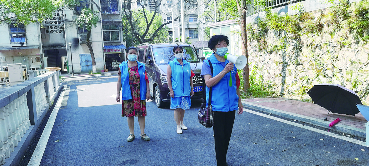 柳凤莲(右一)在小区做安全宣传。 通讯员供图