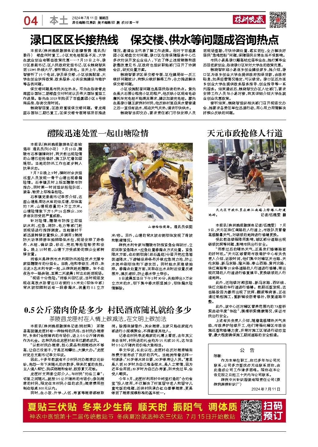 渌口区区长接热线 保交楼、供水等问题成咨询热点