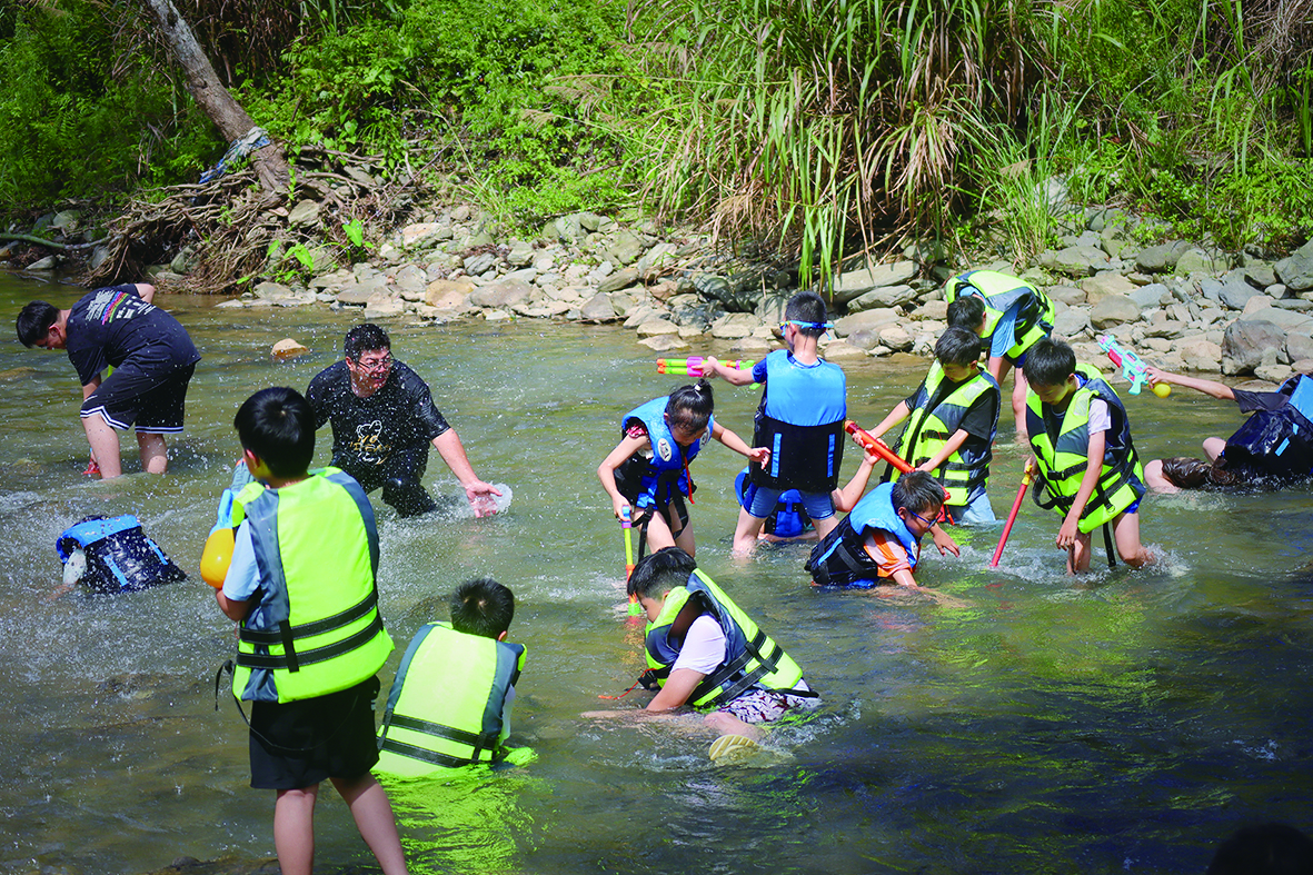 小营员们体验溯溪,感受大自然带来的丝丝凉意。 通讯员/供图