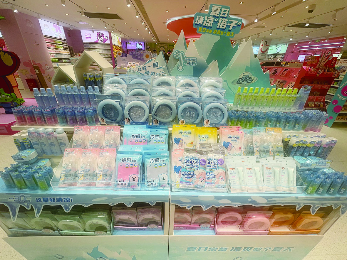 在防晒之外,“冷感”产品因提供直接的清凉体验,也深受市民青睐。