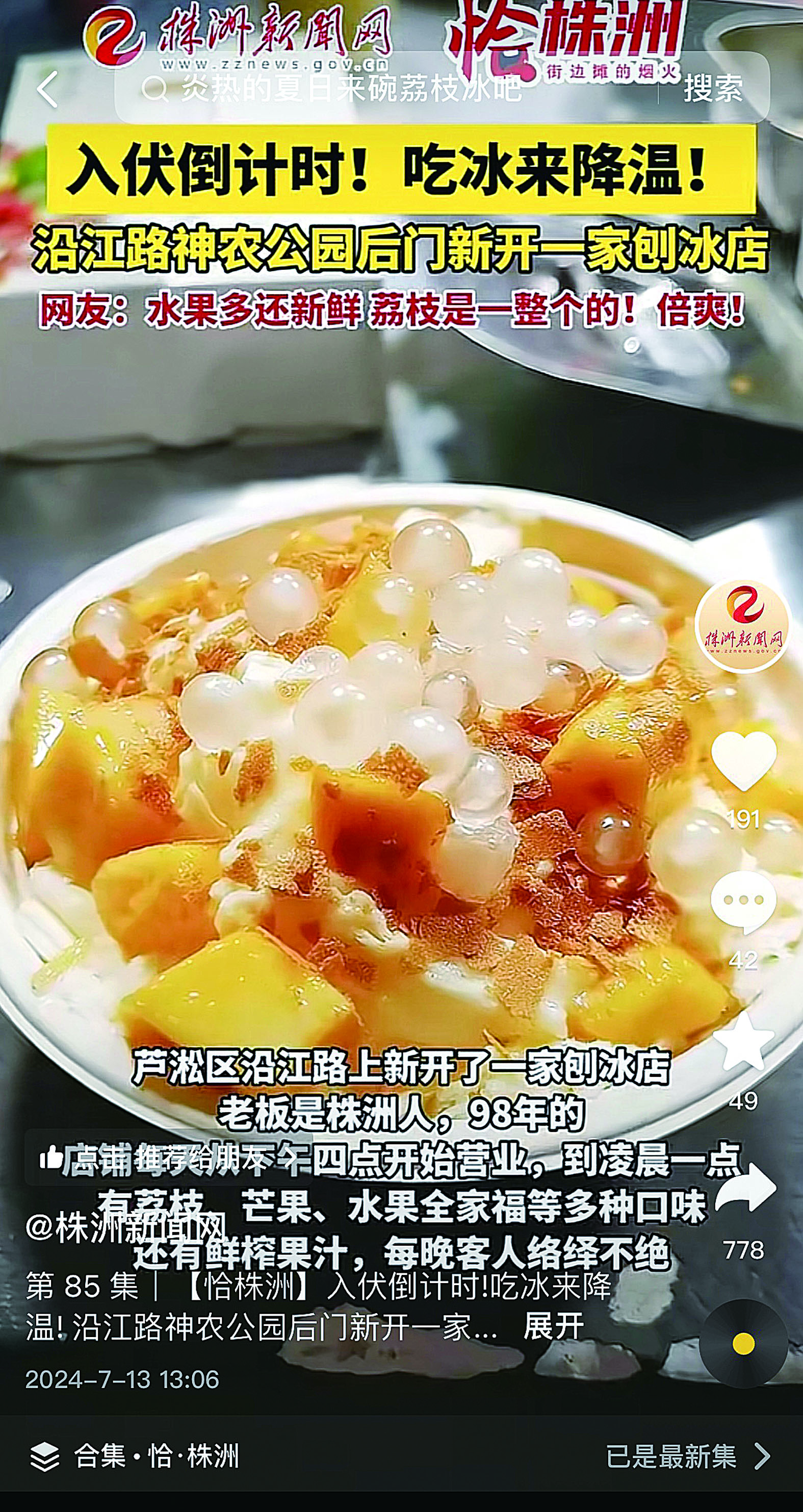 芦淞区沿江路上新开了一家刨冰店,店铺每天从下午四时开始营业,到凌晨一时。有荔枝、芒果、水果全家福等多种口味,还有鲜榨果汁,每晚客人络绎不绝。